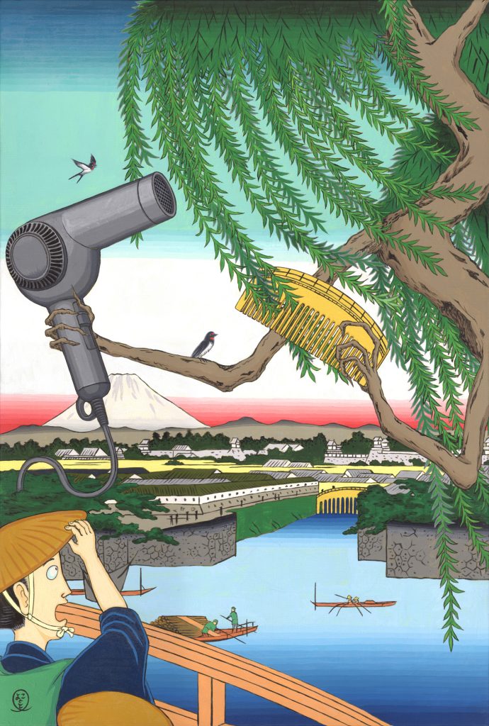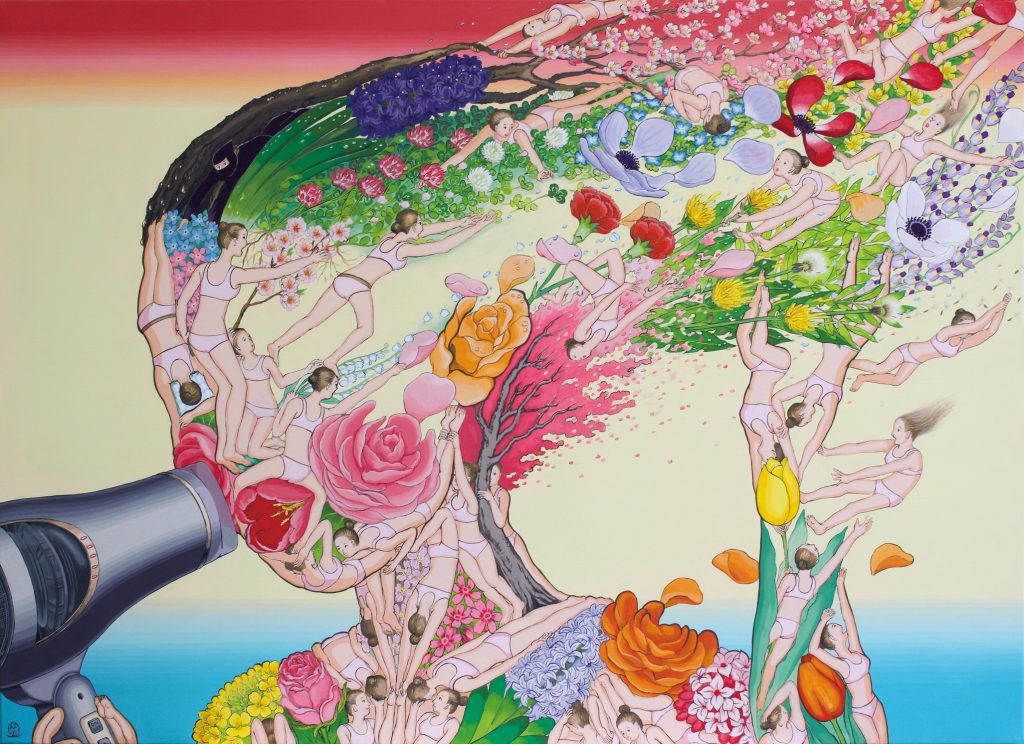Kadenzu Hair Dryer, Fleeting Women, 2022, acrylic on canvas, 26.6” x 19.7”