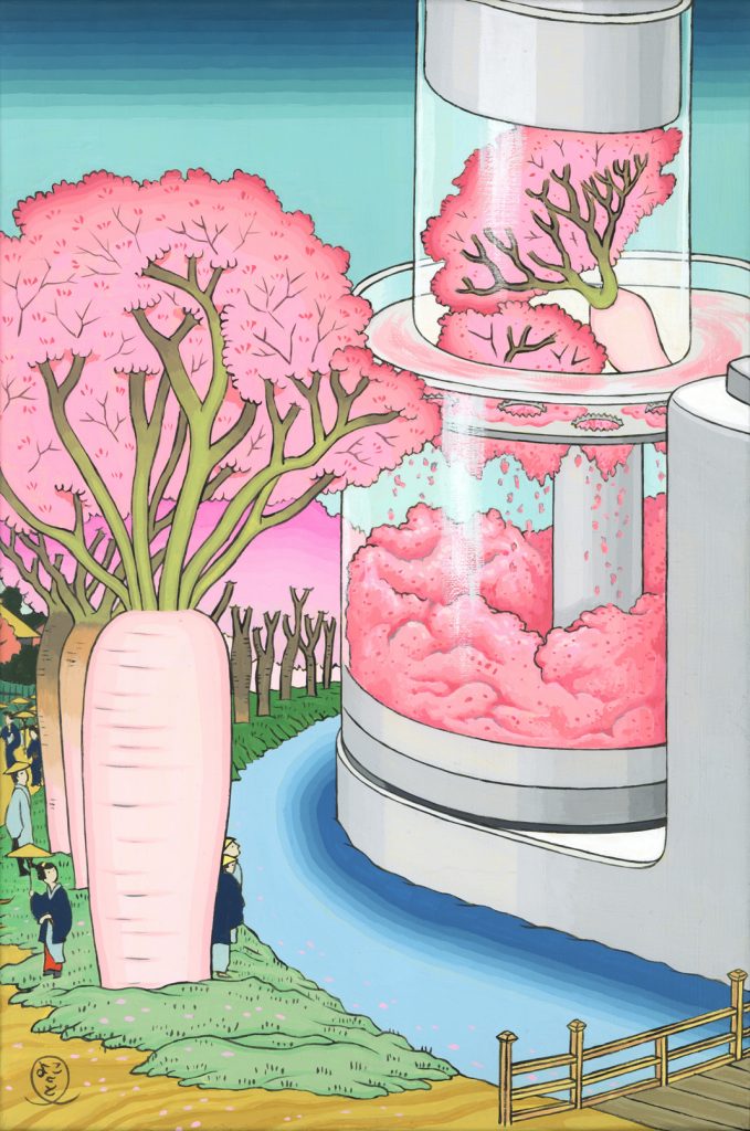 Kadenzu Electric Cherry Radish Grater, 2026, acrylic on canvas, 18.1” x 33.3”